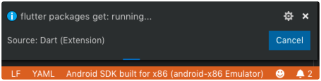 2) 추가후 저장을 하게 되면 packages get 이 동작하면서 'flutter_svg' package를 다운받습니다.