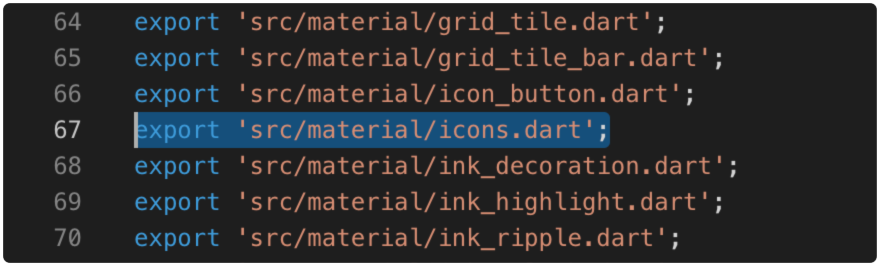 우리가 코드 처음에 material package를 import한걸 아시나요? 여기 안에 icon.dart가 포함되어 있습니다