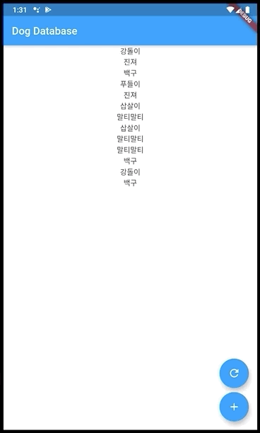 2) 화면을 초기화 하고, DB에 저장된 모든 강아지 정보를 불러와서 화면에 반영하는 방법이 있습니다