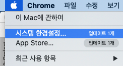 1. 맥북에서 사과 로고를 누르고 시스템 환경설정을 누릅니다.