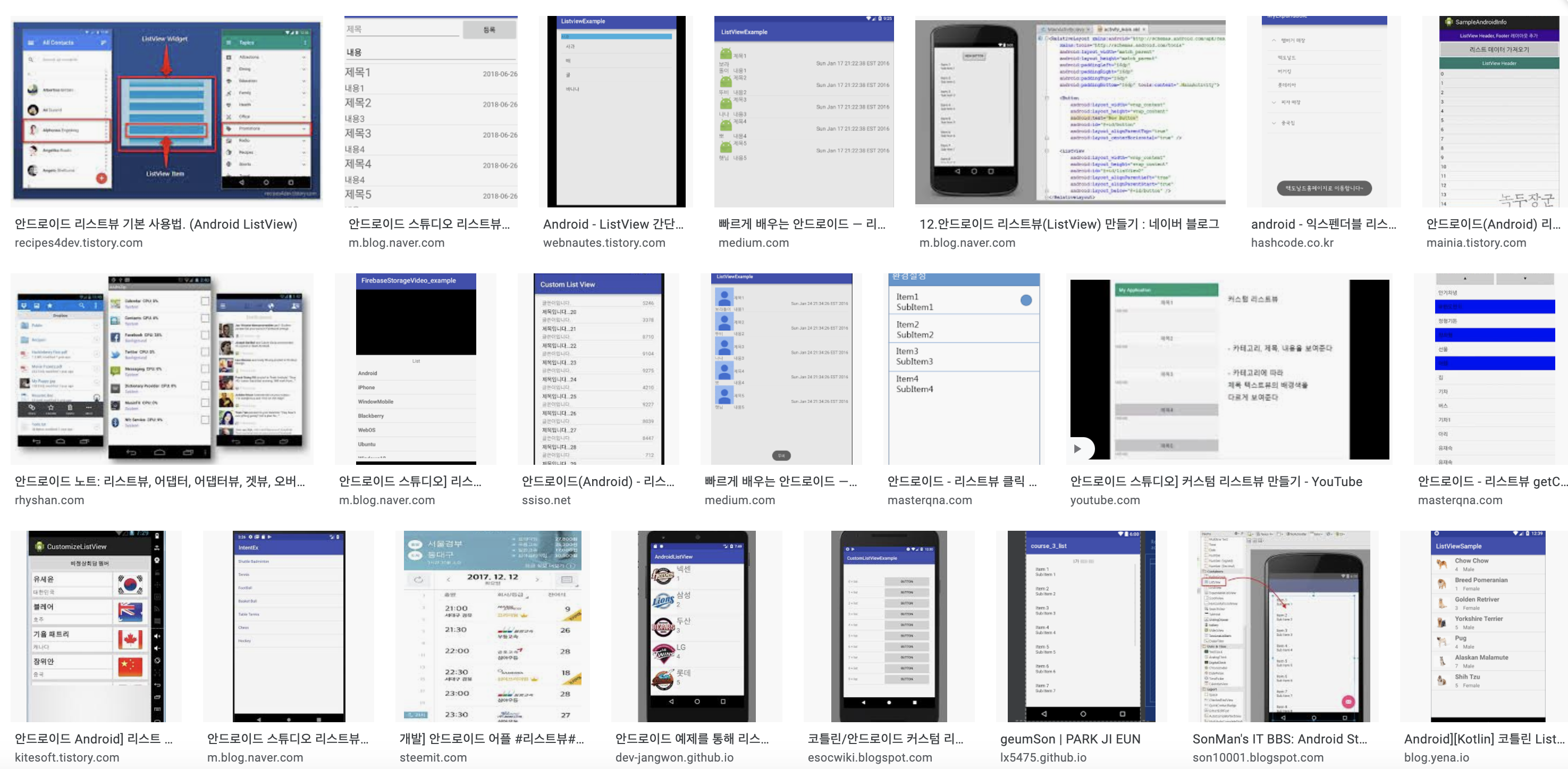 리스트뷰는 기본적으로 스크롤을 가지고 있는 뷰 이기때문에 가로로된 리스트뷰, 바둑판 형식의 리스트뷰도 존재합니다