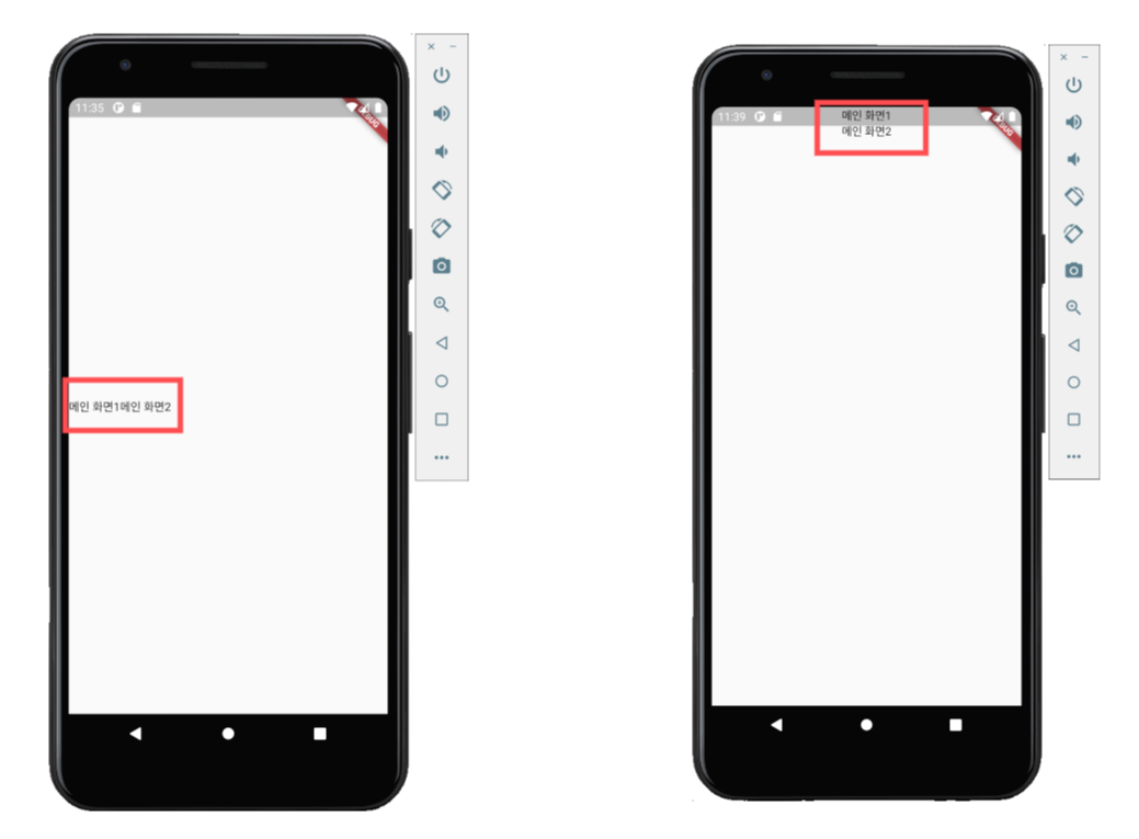 화면의 반반을 차지하고 하려면 아래와 같이 Text 위젯을 Expanded 위젯으로 감싸봅니다.