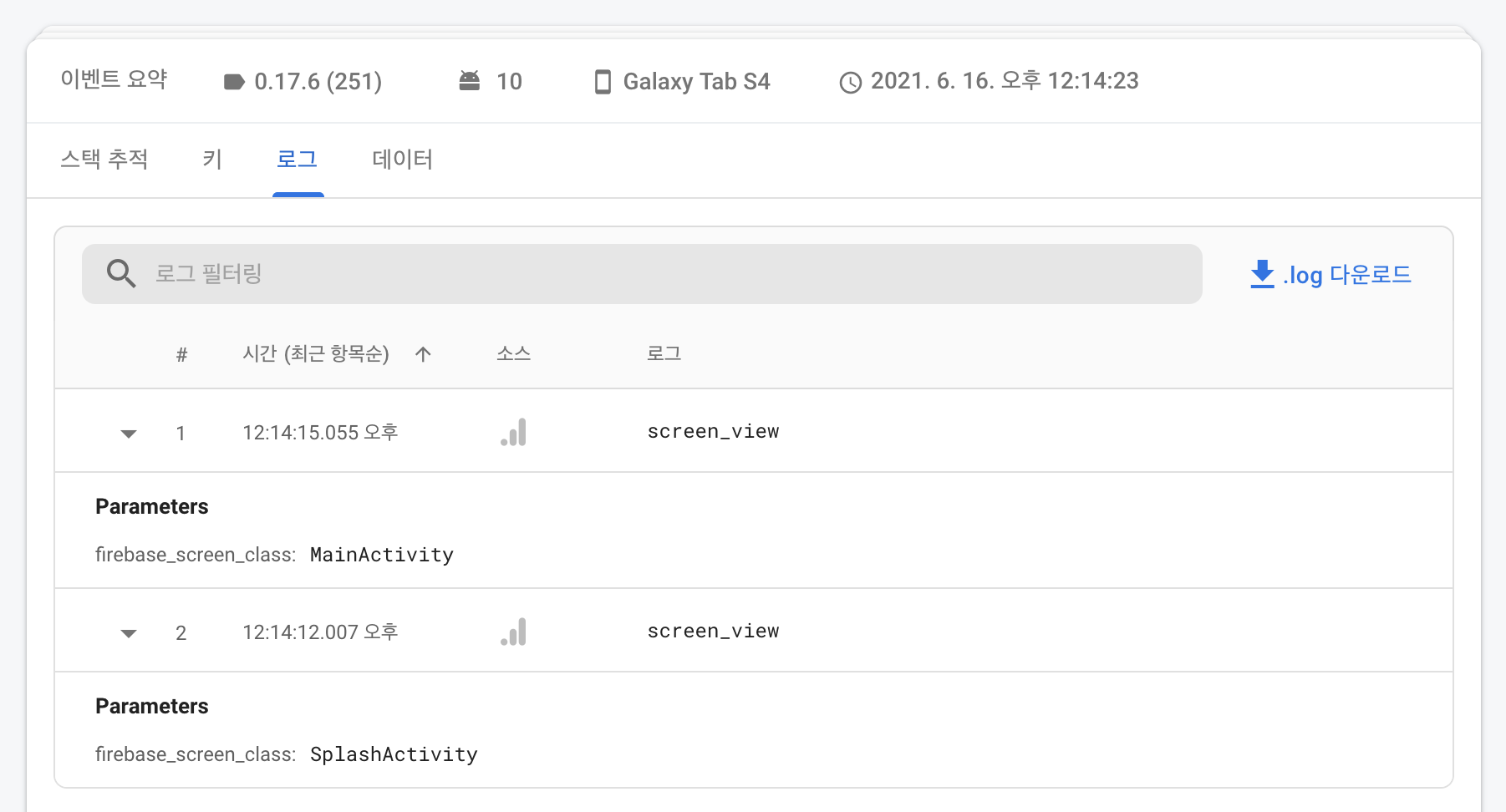 화면마다 로그를 실행하거나, 버튼이 로그를 실행하면, 사용자의 좀 더 정확한 상황을 추적할 수 있습니다.
