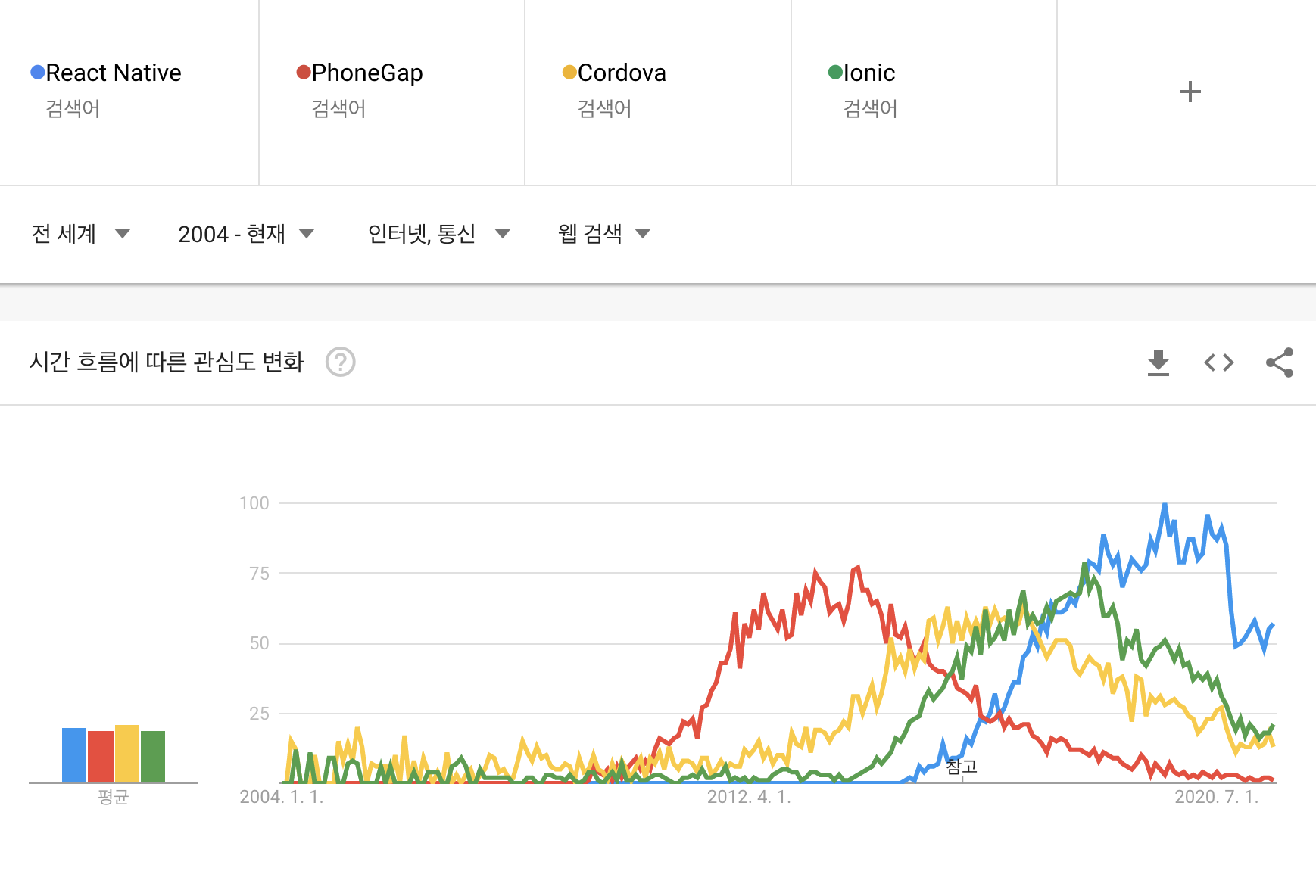 신기하게도 트랜드로 PhoneGap이 Cordova로 변경되고, Cordova가 Ionic으로 변경되는게 보이네요.