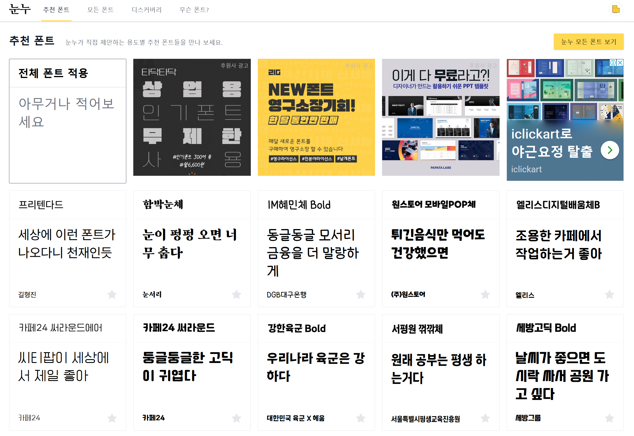 눈누에서는 상업적인 목적으로 무료로 사용할 수 있는 많은 폰트들을 소개해 주고 있습니다.