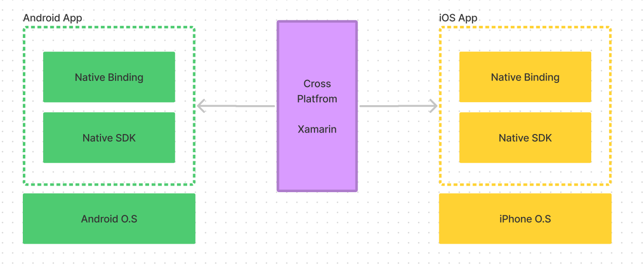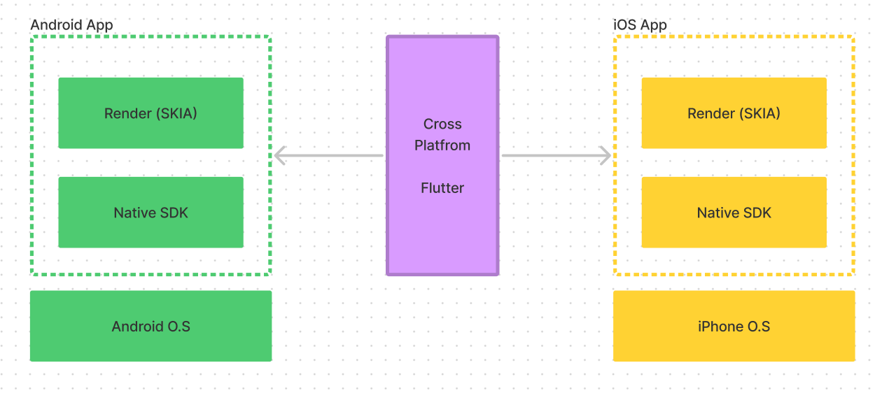 크로스 플랫폼에서 정한 언어로 개발해야 합니다. 각 크로스 플랫폼에서 개발하면 각 O.S에서 사용하는 SDK를 이용한 네이티브 앱이 만들어 집니다.