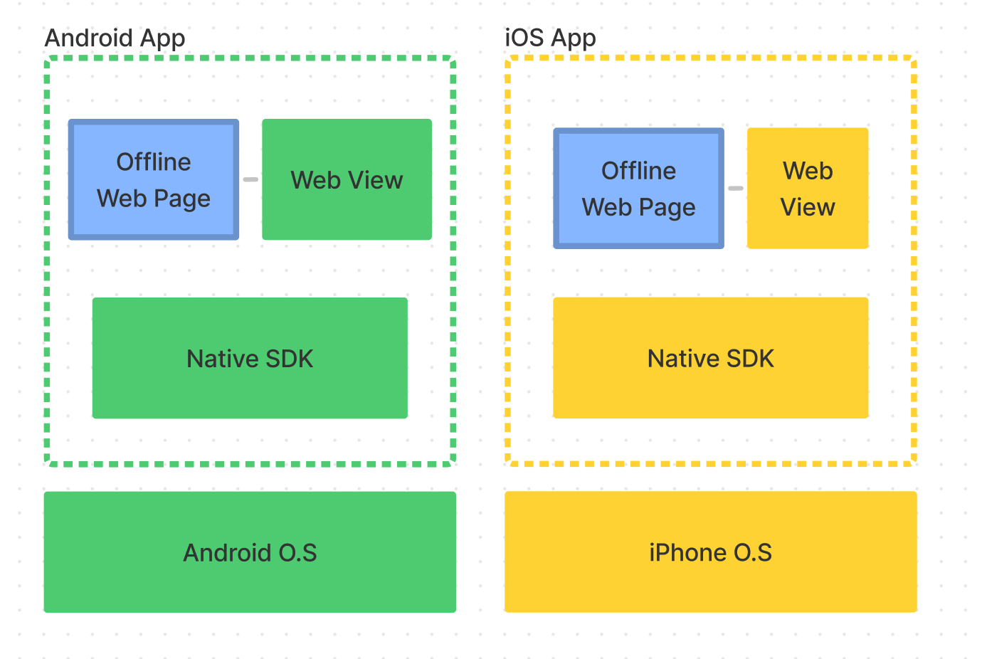 • O.S 자체의 기능(카메라, 파일 접근, 시리얼 통신, NFC 등)을 쓰려면, 각 O.S 별로 네이티브 개발을 추가적으로 해야합니다.