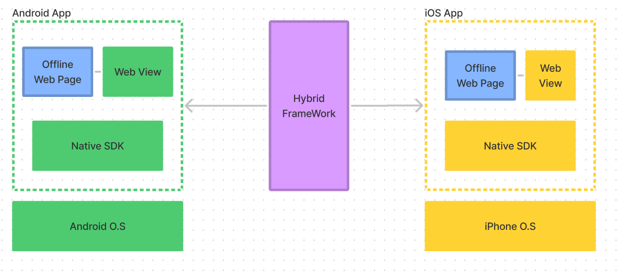 주로 웹 앱 기반으로 개발된 앱을 말하며, 프레임 워크를 이용해서 개발하면 각 O.S 별로 웹 앱이 만들어 지는 형태를 말합니다.