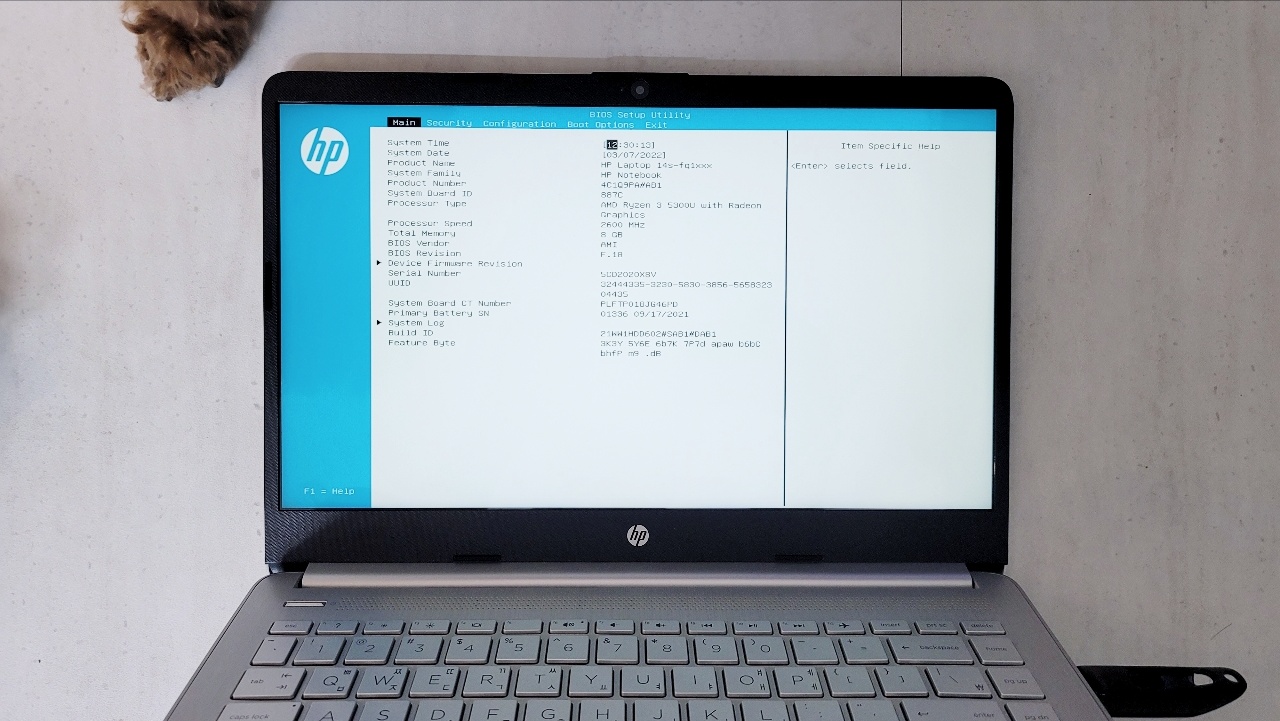 bios 화면으로 가려면 전원버튼을 누르고 빠르게 F10을 눌러주세요.