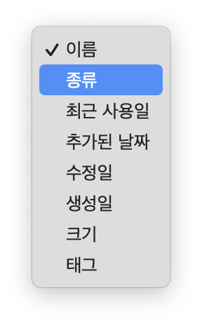 맥에서는 정말 뭘로 선택해도 맘에 안드는 파일 정리 방법이 Finder에서 제공합니다........