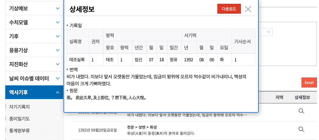 태조실록에 적힌 날씨를 보게 되었음 ㅋㅋㅋㅋㅋㅋㅋㅋ