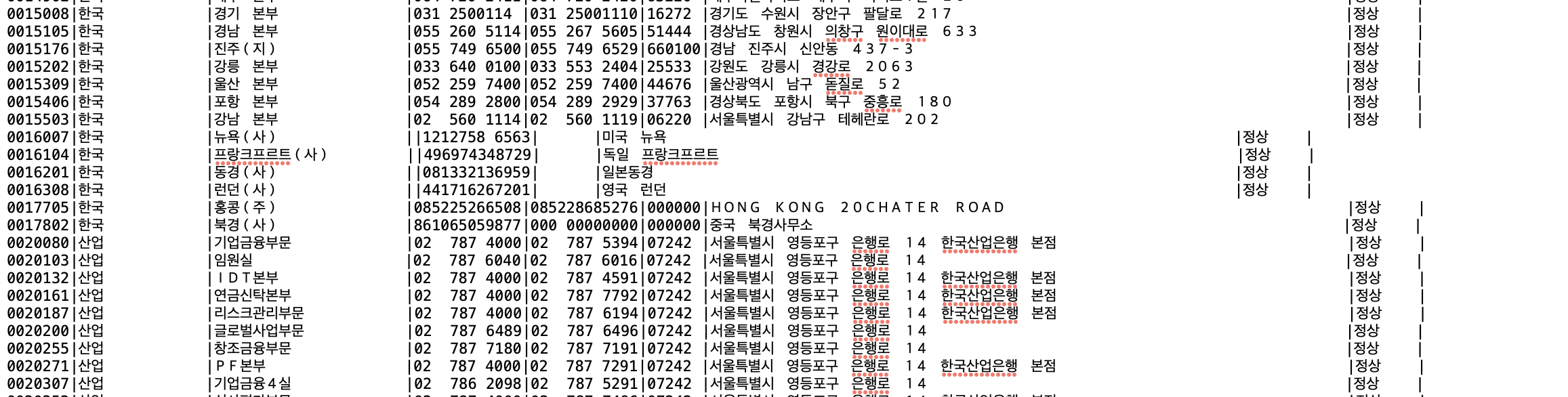 그래서 위 스크린샷을 보면 한국은행은 001, 산업은행은 002로 시작합니다.