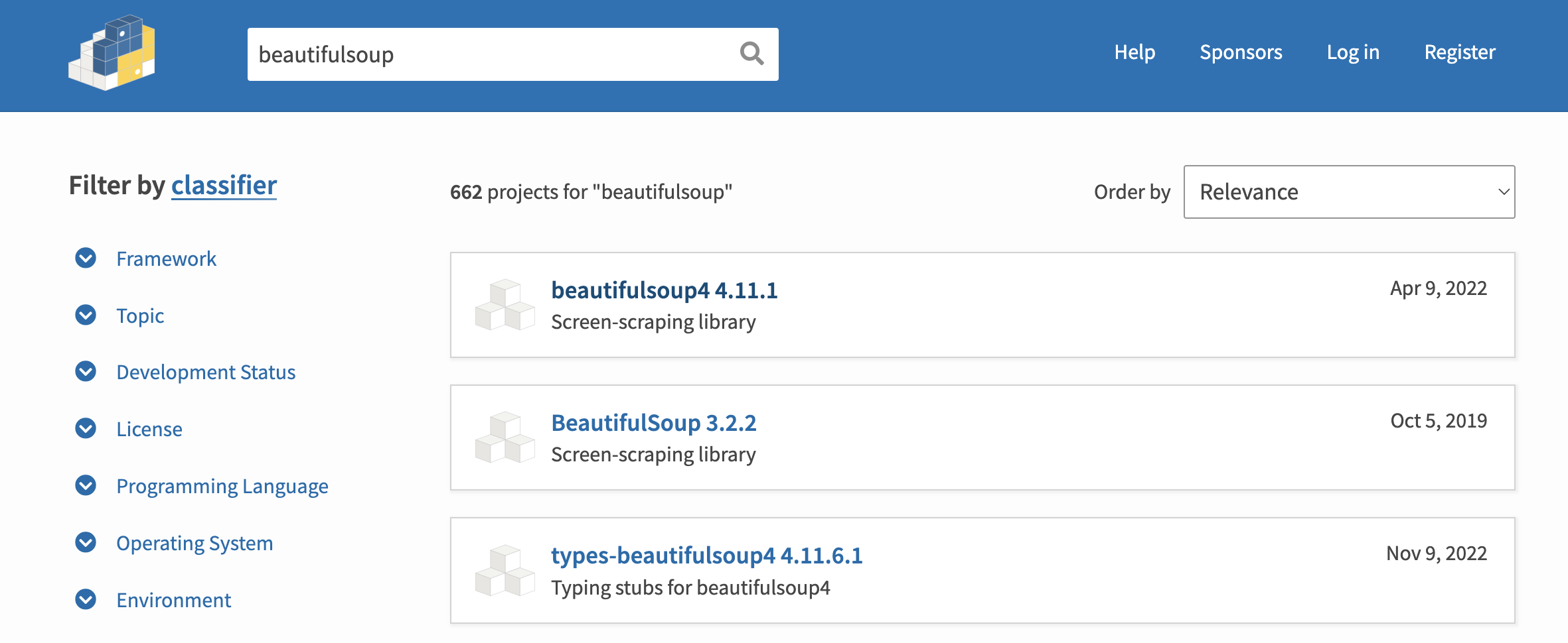 https://pypi.org/search/?q=beautifulsoup