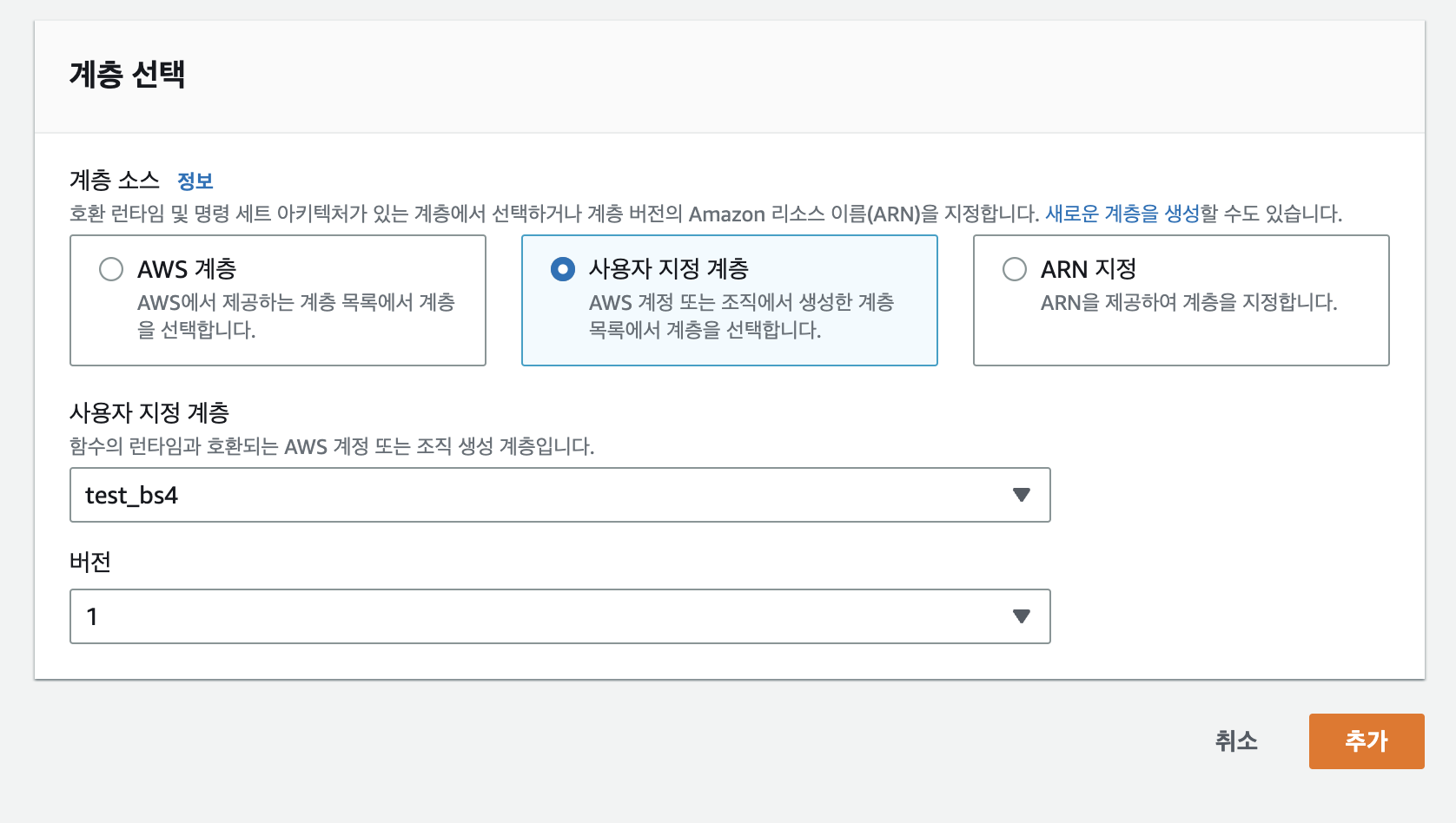 이렇게 생성 완료된 계층은 ARN까지 생기게 됩니다.