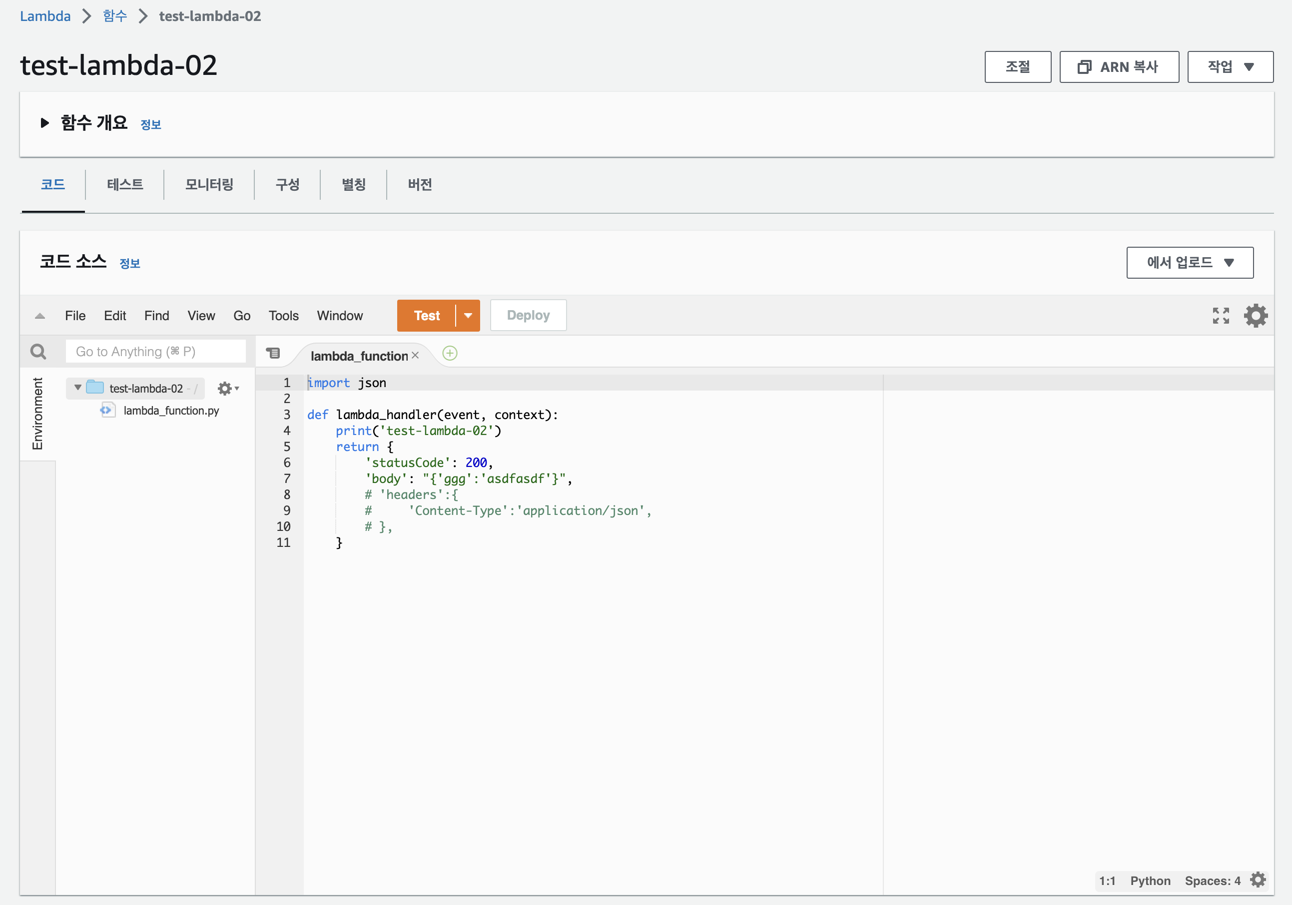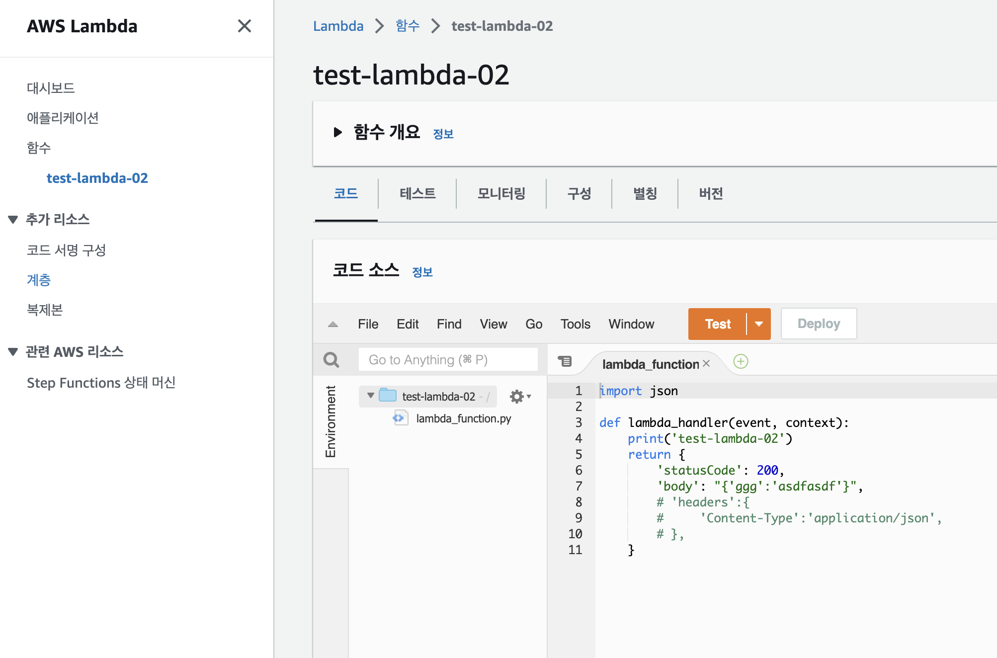 추가하고보니 람다 하단에 추가된 계층으로 test_bs4가 보입니다.