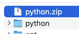 AWS Lambda의 Layer에 추가해주기 위해선 python폴더를 압축해야되기 때문에 아래 명령어처럼