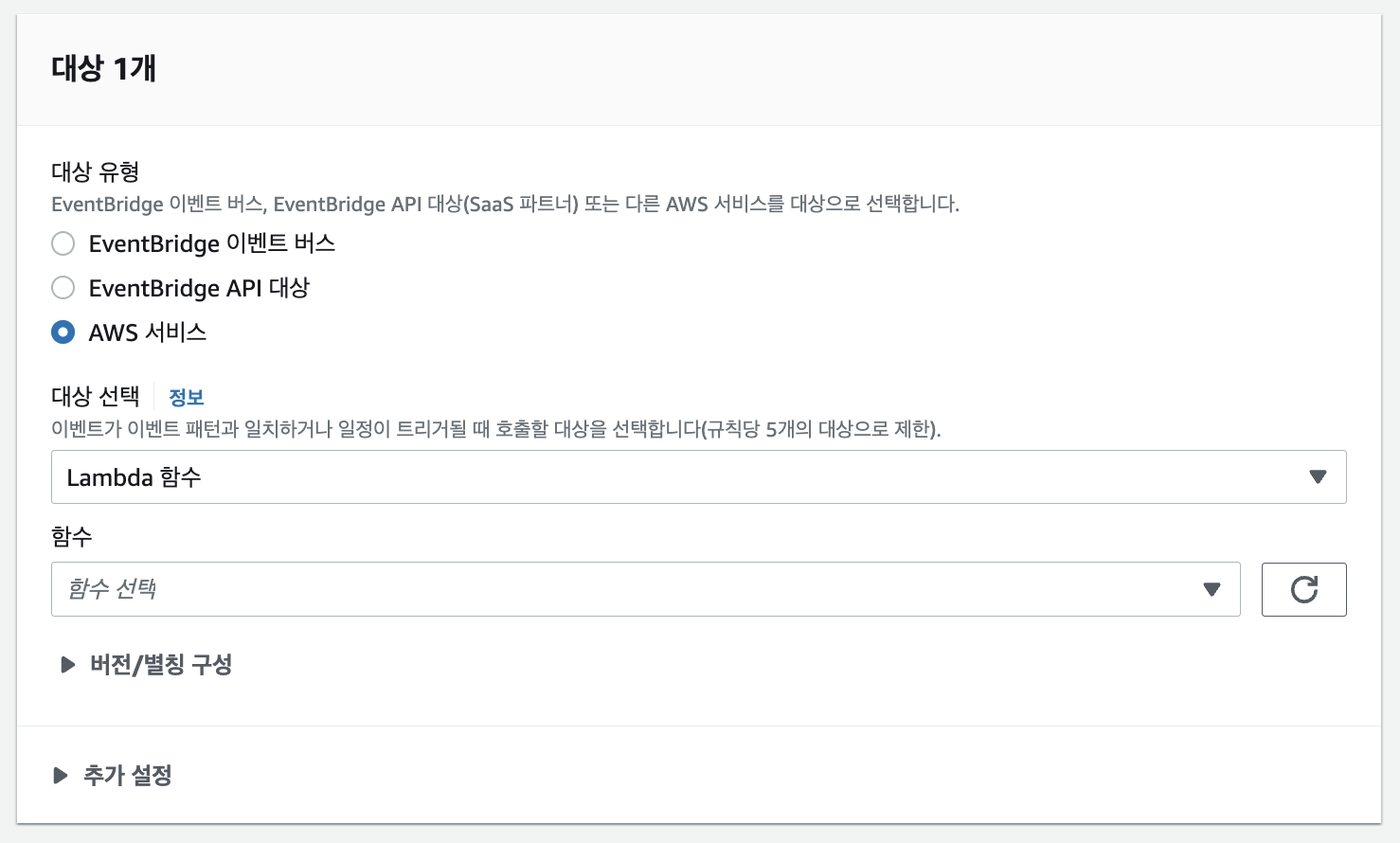 그리고 aws 서비스 중에 내가 만든 Lambda를 정확히 선택해서 호출 해줄 수 있습니다.