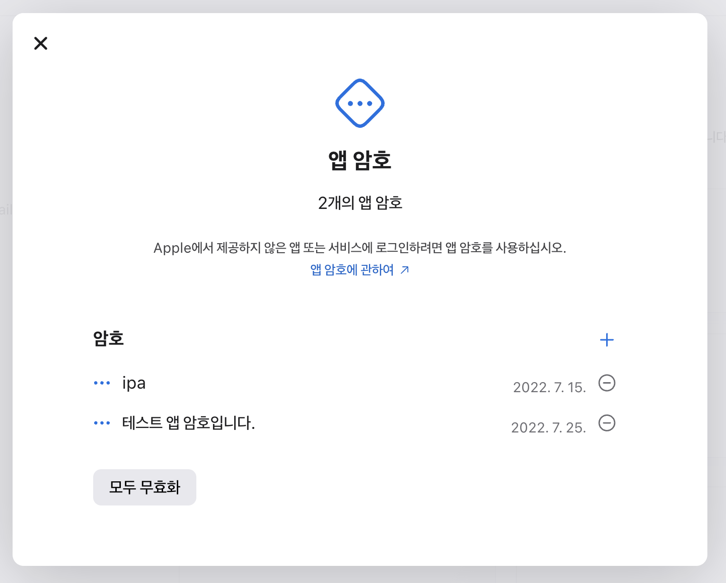 여러개를 만들 수 있습니다. + 버튼을 눌러서 암호를 만들면 됩니다.