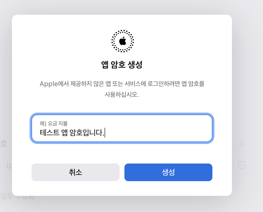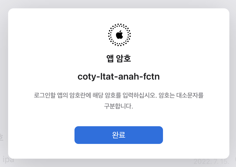 6. 그러면 apple에서 임시 비밀번호를 만들어줍니다.