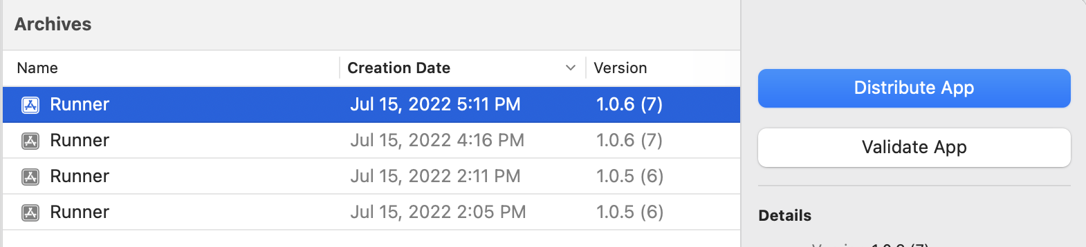 업로드하고 싶은 만든 Archives 클릭, Distribute App 클릭