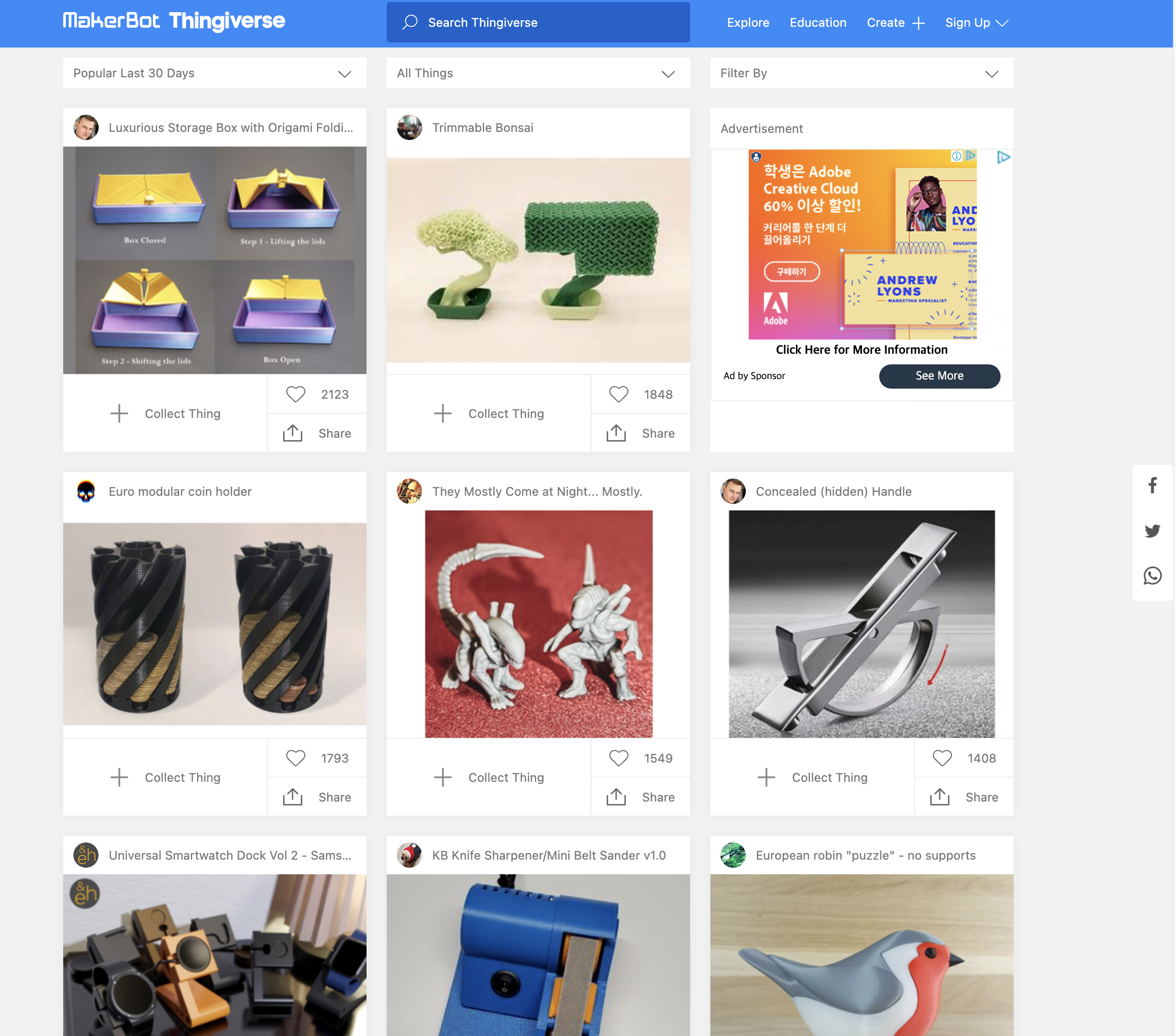 Download files and build them with your 3D printer, laser cutter, or CNC. Thingiverse is a universe of things.