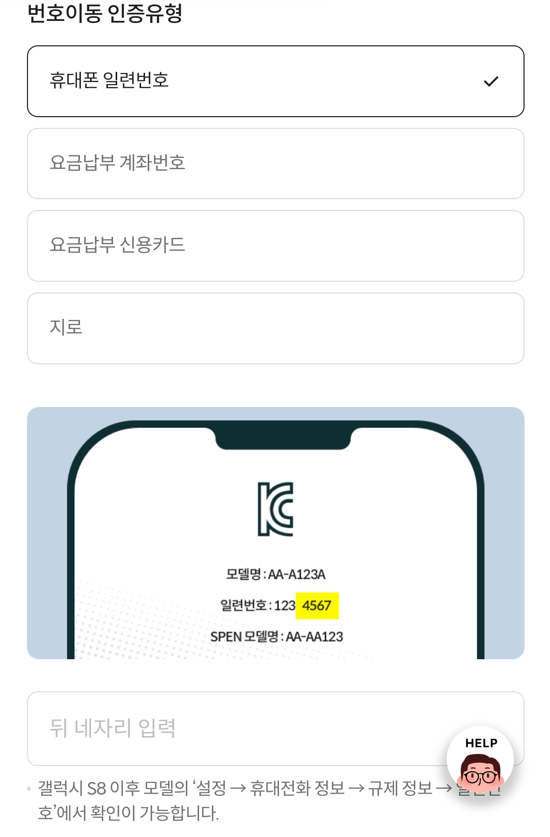 *폰 설정 앱 > 휴대전화 정보 > 규제정보 > 일련번호 끝 4자리를 기억해서 입력합니다.