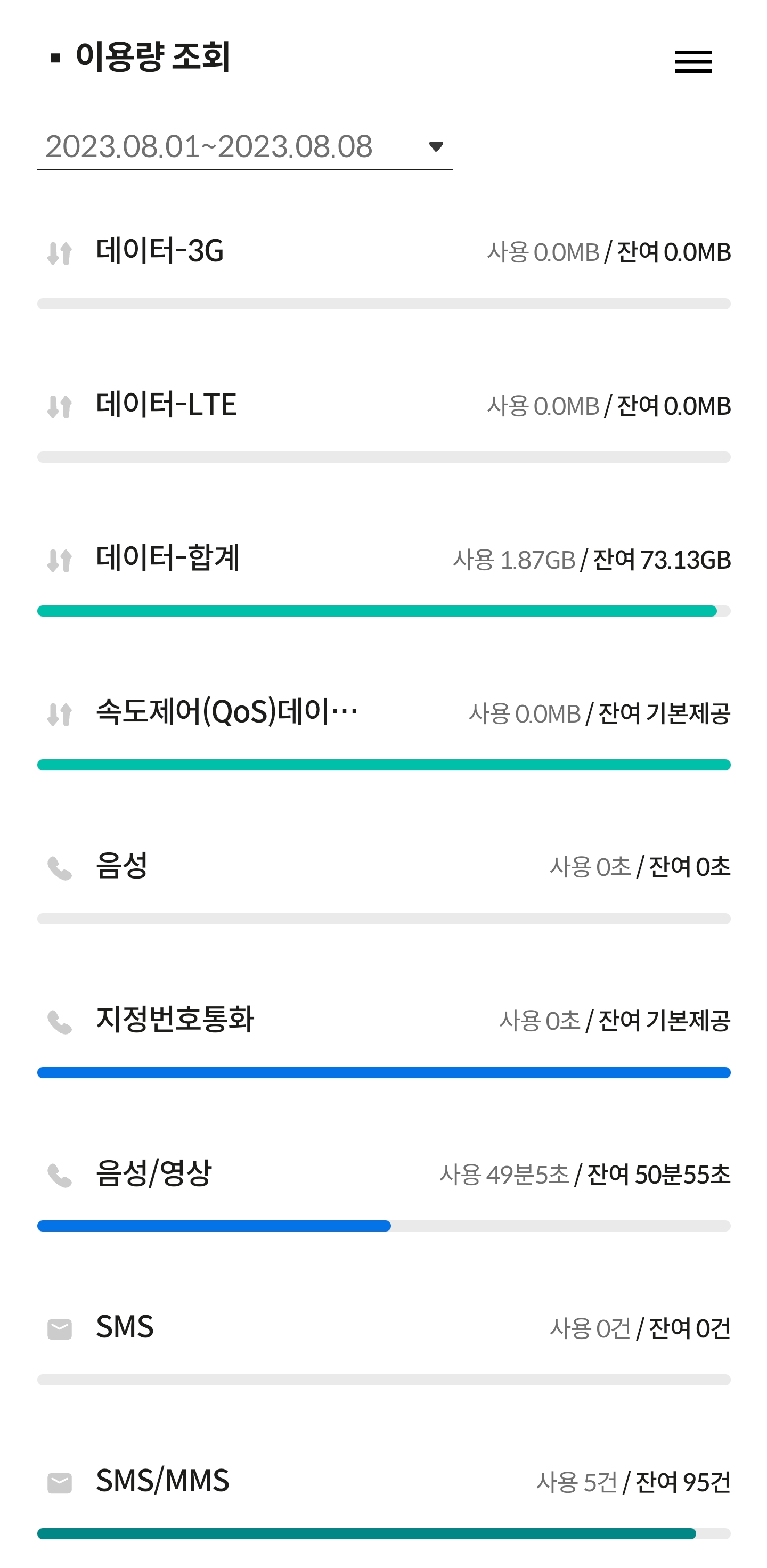 다른 통신사 앱에 비해, ktm앱은 이용량 조회가 빠른건 정말 좋네요
