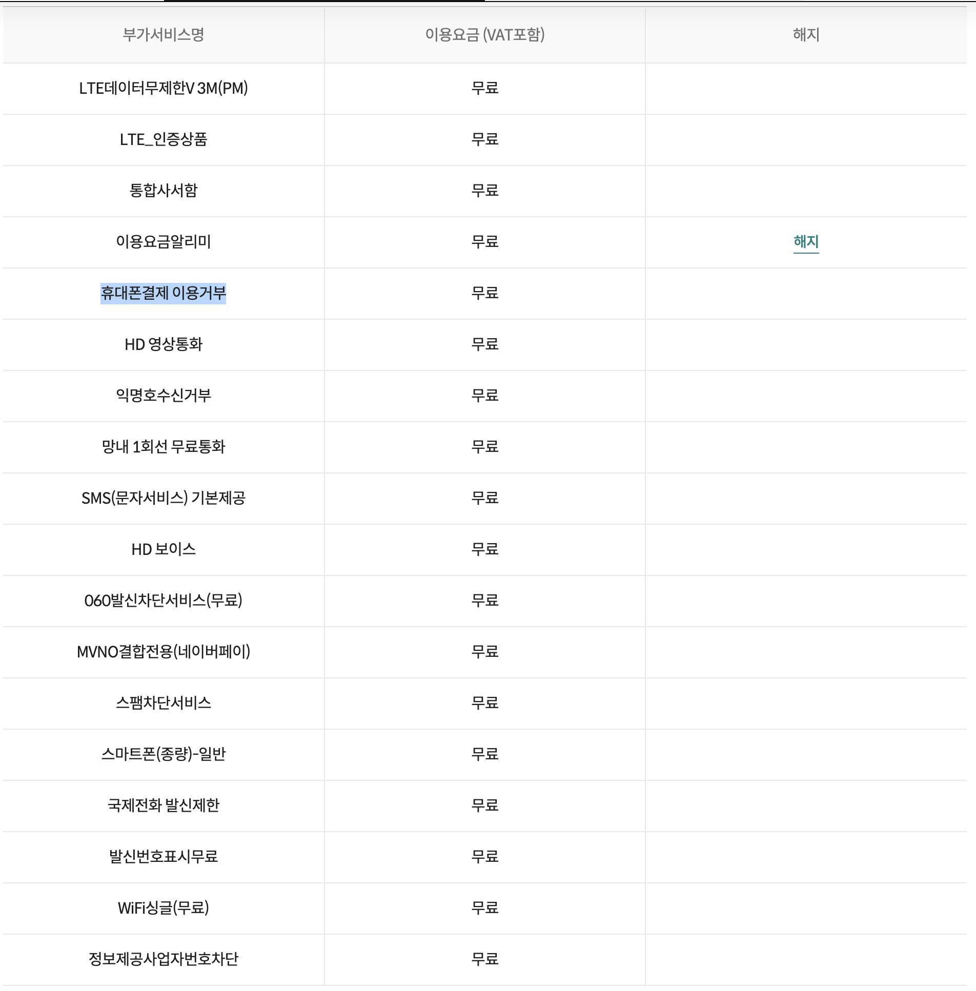 참고 하실 수 있게 제가 가입한 부가서비스 목록을 올려드립니다.