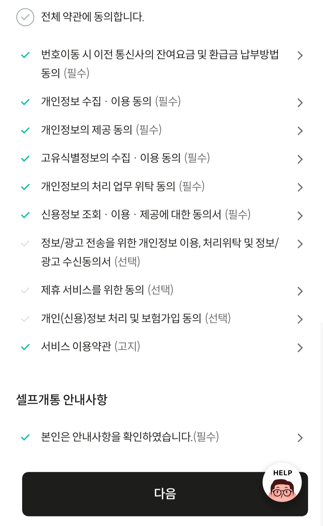 셀프개통이 정상완료 됬다는 메세지가 완료되면 계약과정은 끝이 납니다.