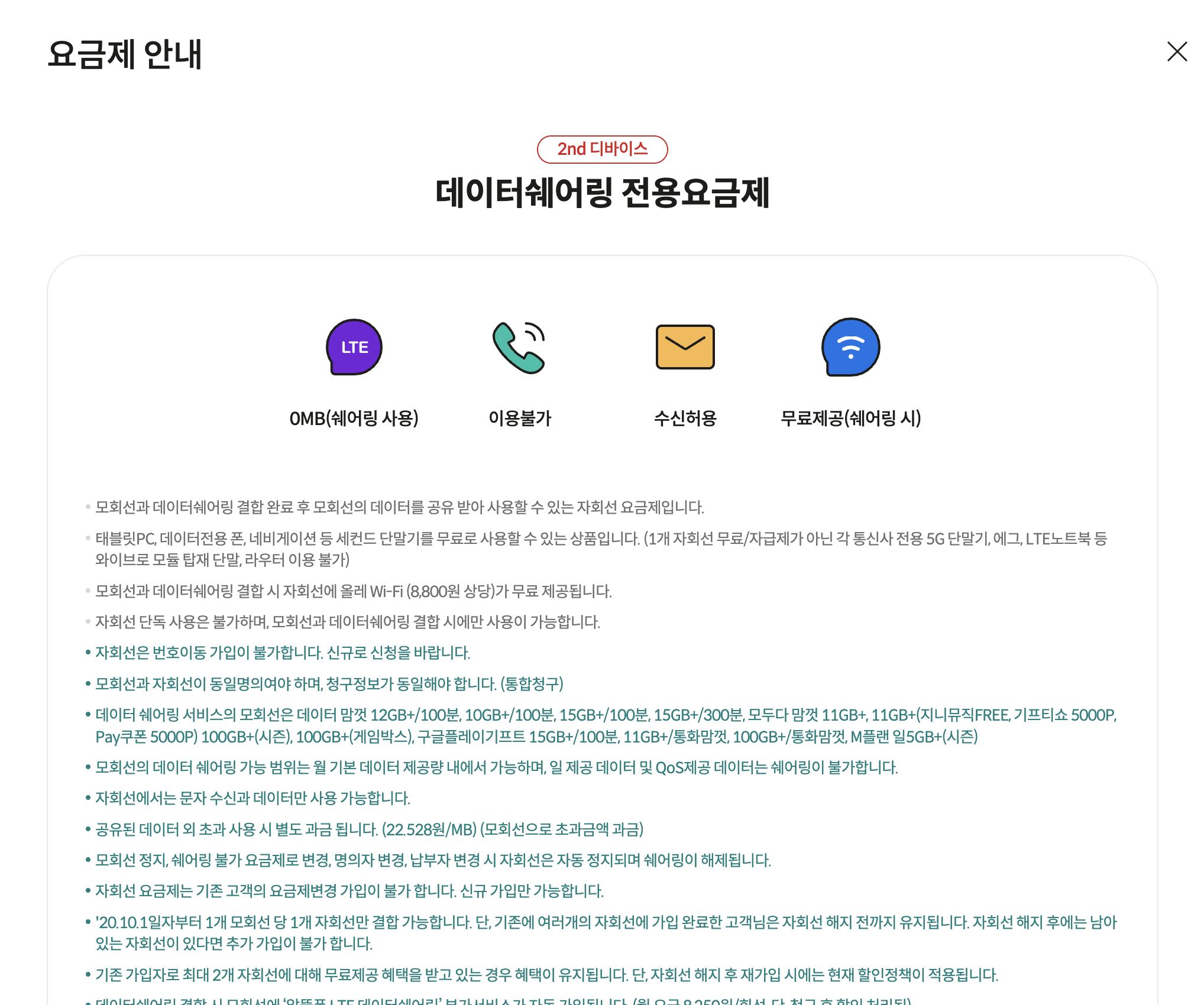 "아무나 결합" 데이터 제공 요금제 (요금제 선택 전 참고2)