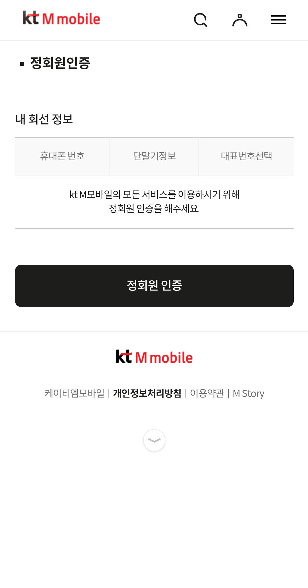 ktm 모바일 홈페이지 ( https://www.ktmmobile.com/main.do ) 접속해서, 로그인하고 마이페이지로 이동해주세요.