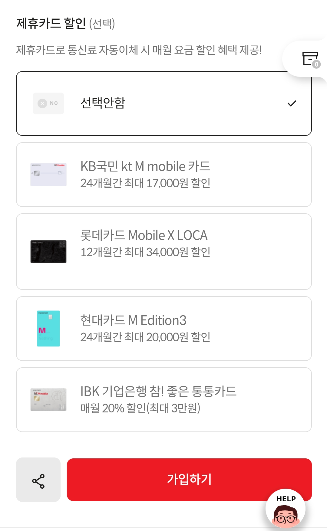 먼저 가입시 받을 수 있는 이벤트 상품과 제휴카드 할인, 요금제를 알아보겠습니다.
