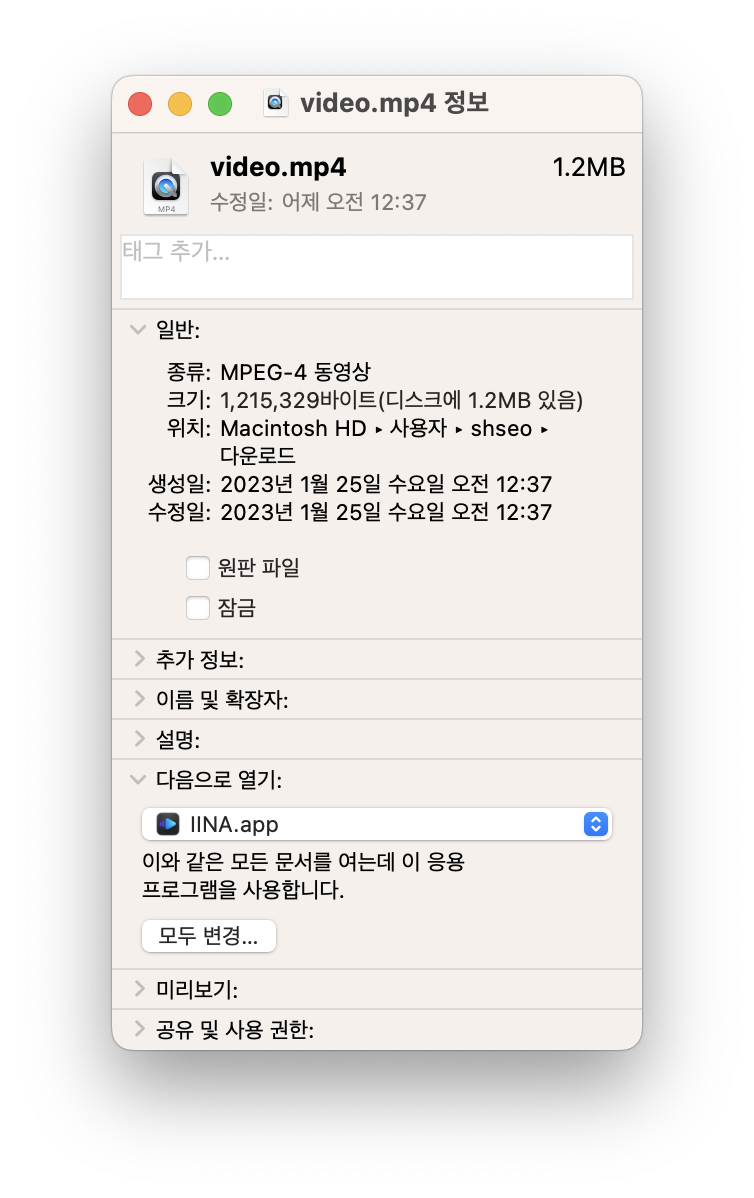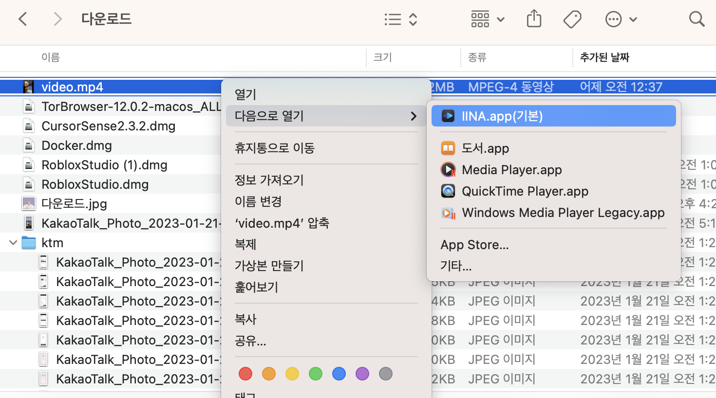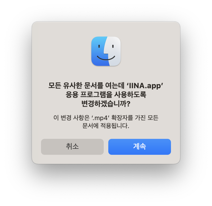 항상 IINA라는 동영상 플레이어로 켜질 수 있도록 변경해 보았습니다.