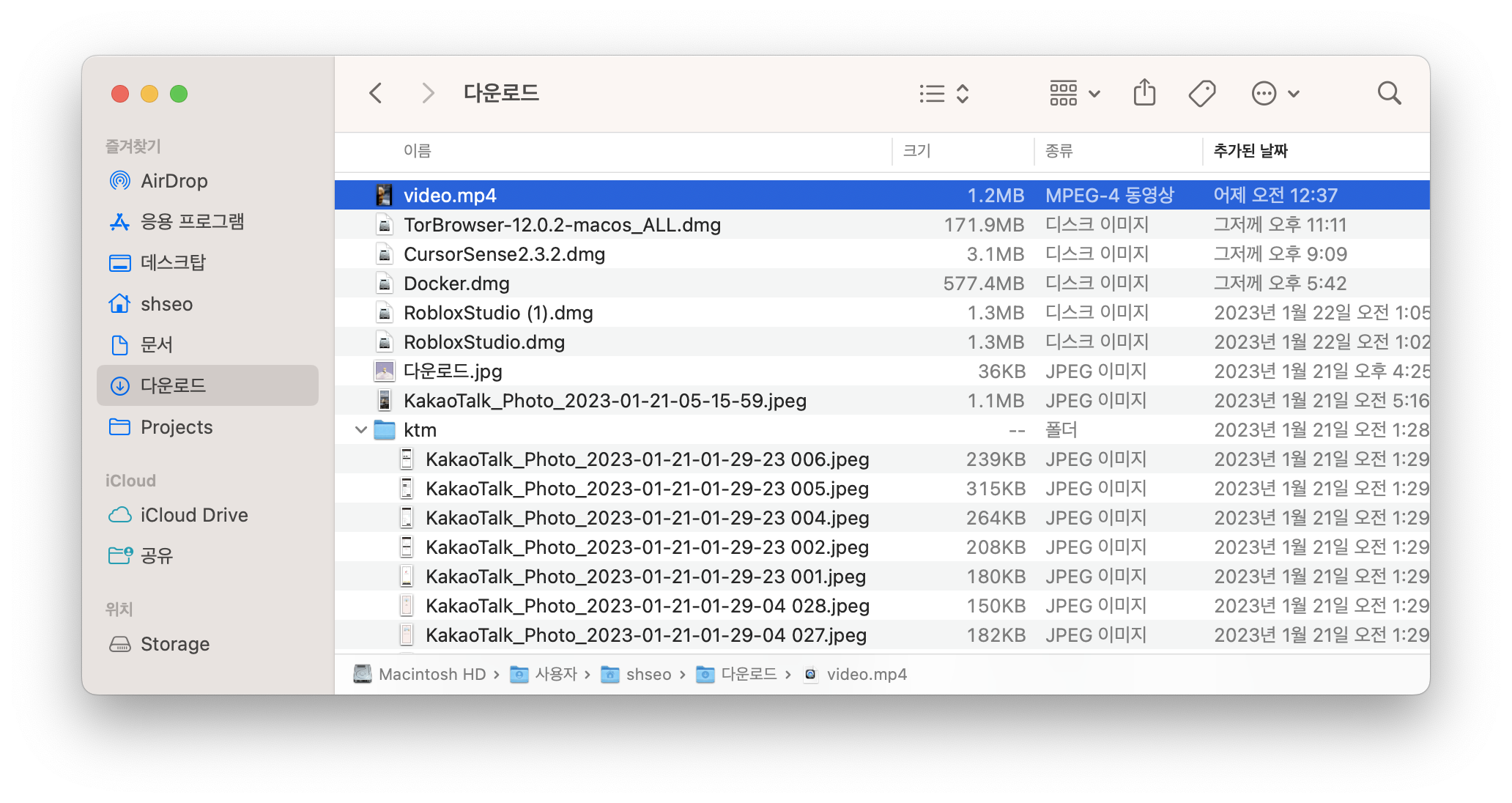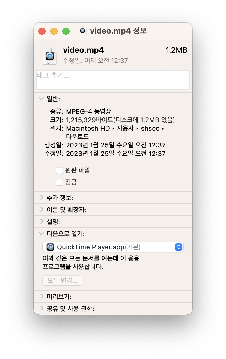맥에서 동영상 파일을 다운받고, 동영상을 더블클릭해서 실행하면