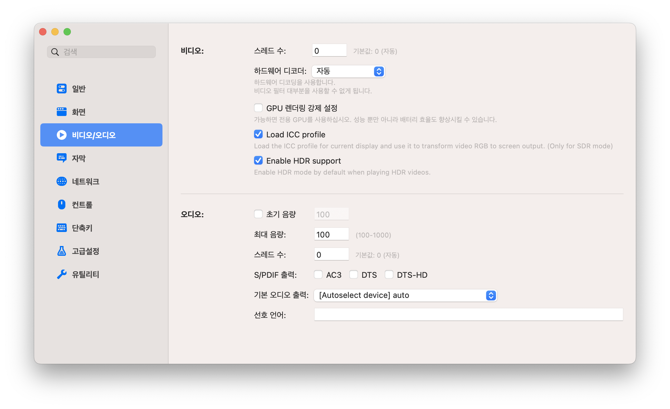 가장 좋았던 기능이, 동영상이나 사운드를 모두 IINA 기본앱으로 설정할 수 있는 기능이였습니다.