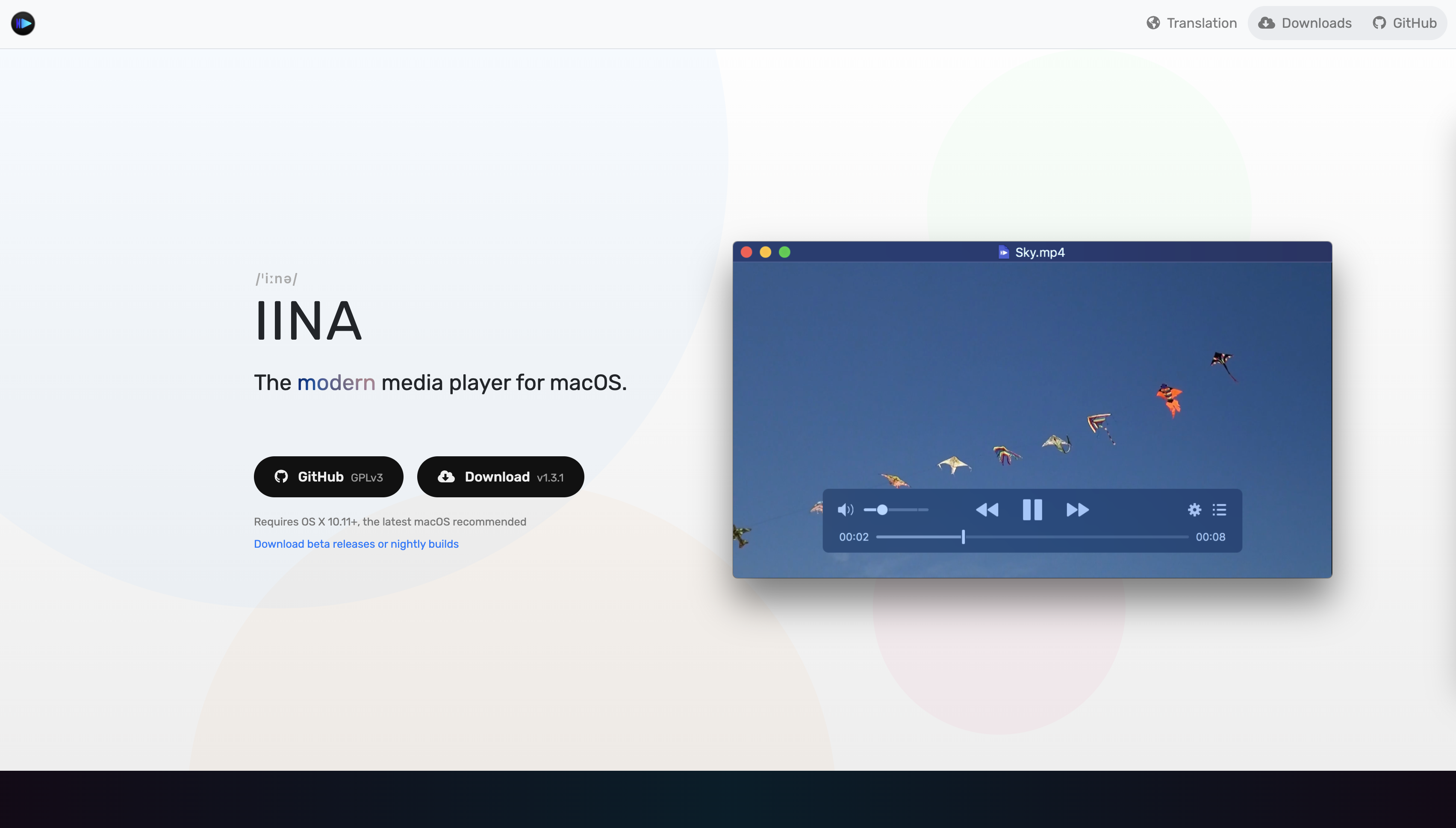 Plays anything. Powered by the open source media player mpv, IINA can play almost every media file you have. With the support of youtube-dl and our browser extensions, you can also play a variety of online streams in IINA via one click.