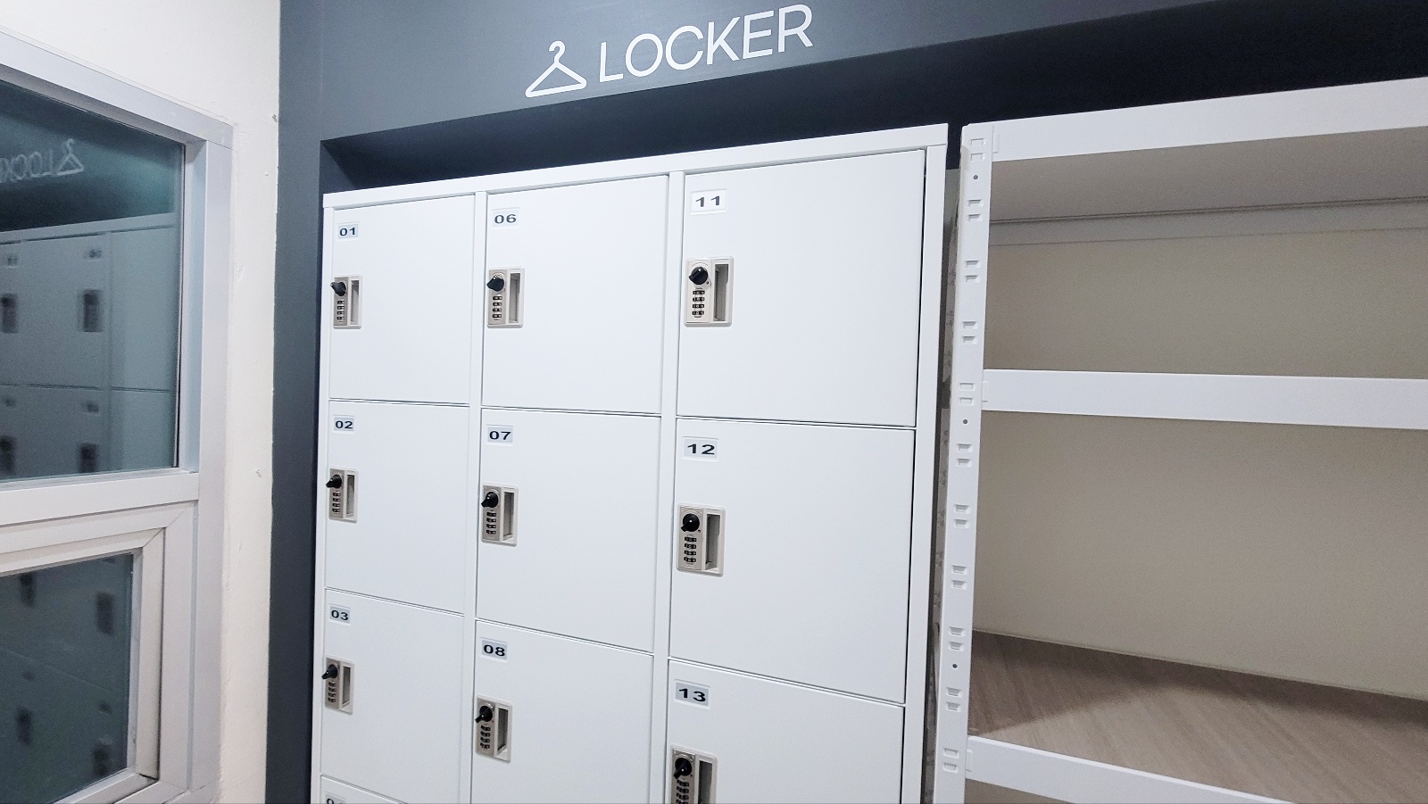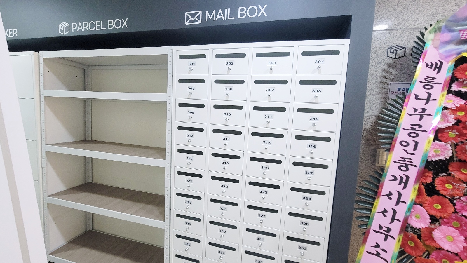 옷이나 다른걸 잠시 넣어두실 수 있는 락커와 택배함, 메일함이 있습니다.