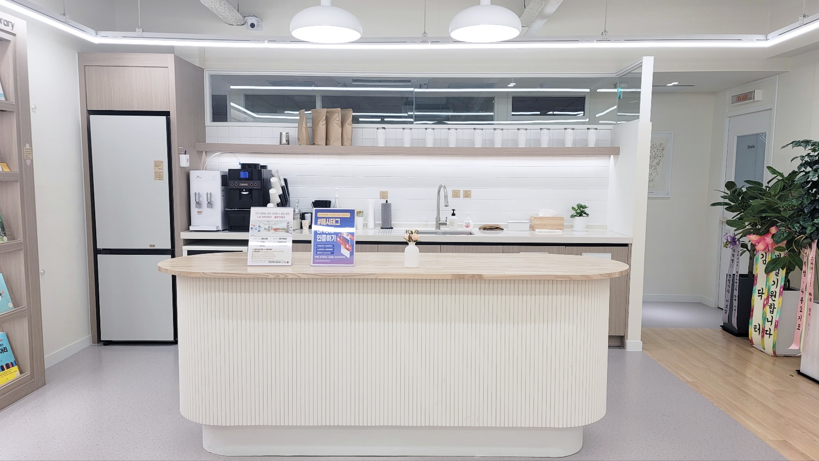 냉장고, 정수기, 커피머신, 시럽, 일회용컵, 키친타올, 물티슈, 티슈 등이 있습니다.