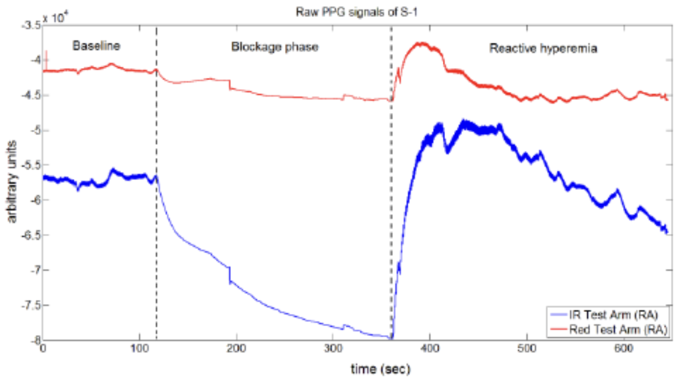 진폭 값의 차이를 비교하여 산소포화도를 측정 할 수 있습니다.