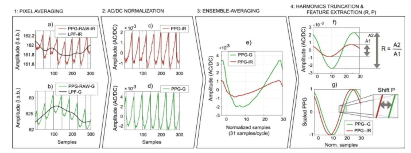 여기서 구해진 LED 값과 IR값을 여러가지 기법을 통해 의미 있는 PPG 값으로 변환합니다.
