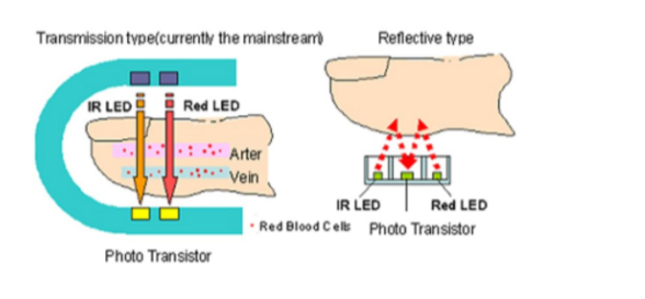 PPG는 적혈구 특성을 이용해서 2가지 형태로 구현되어 있습니다.