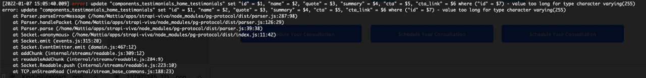 하지만 scheme의 기본 길이가 255자 여서, 255자 길이를 넘는 텍스트를 넣게 되면 아래와 같은 에러가 납니다.
