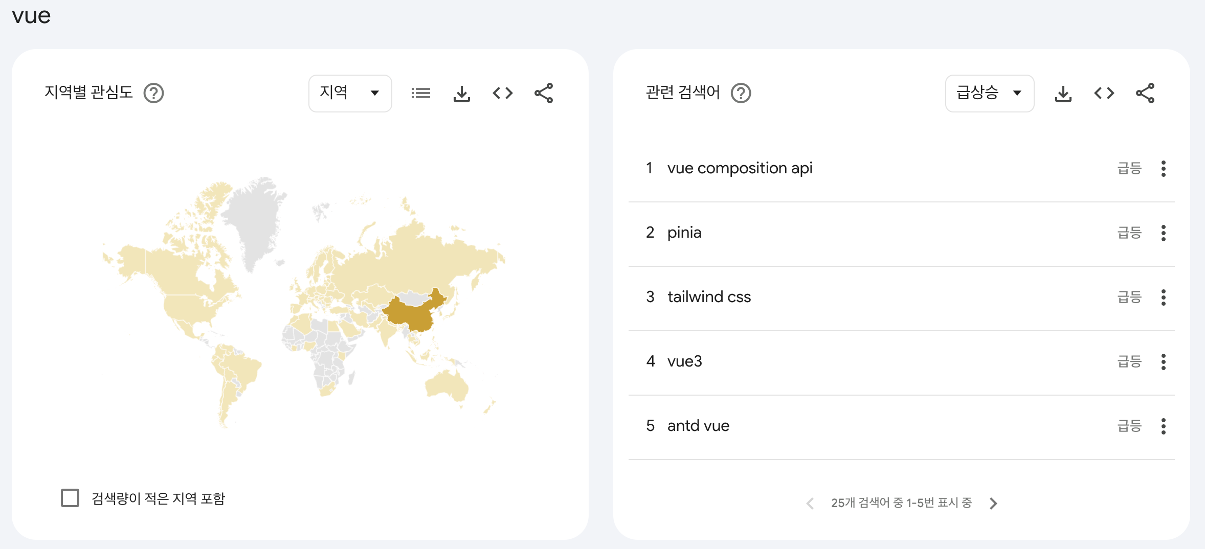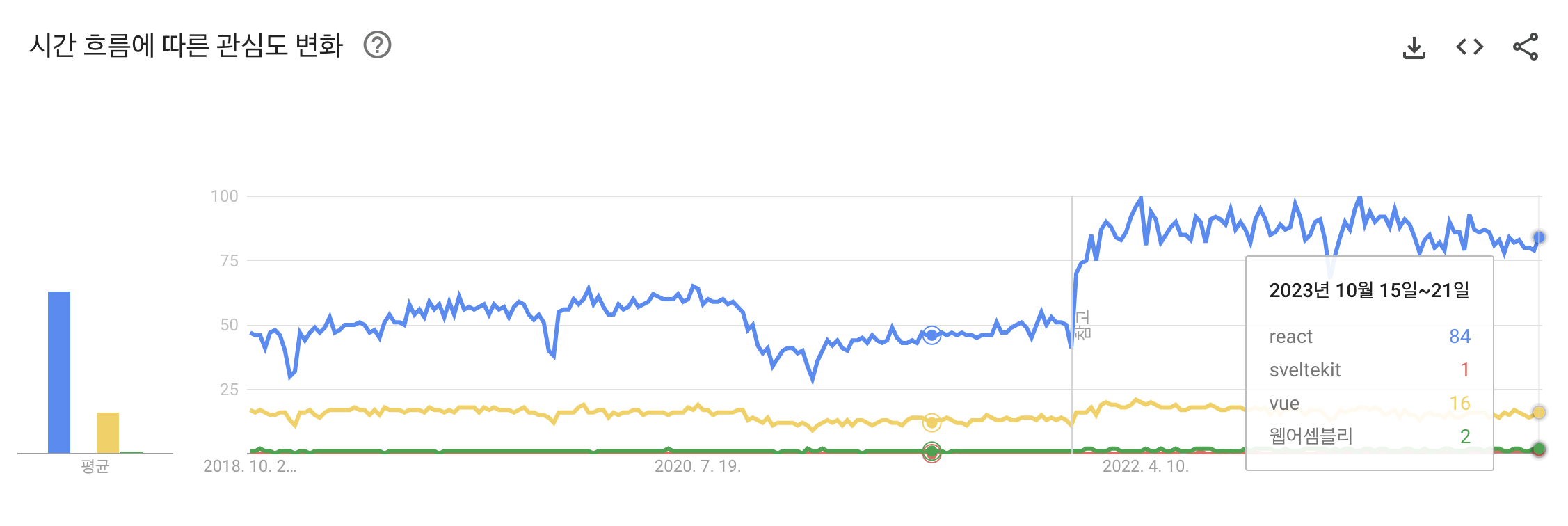 빌드 도구인 vite 검색어까지 급등하고 있네요.