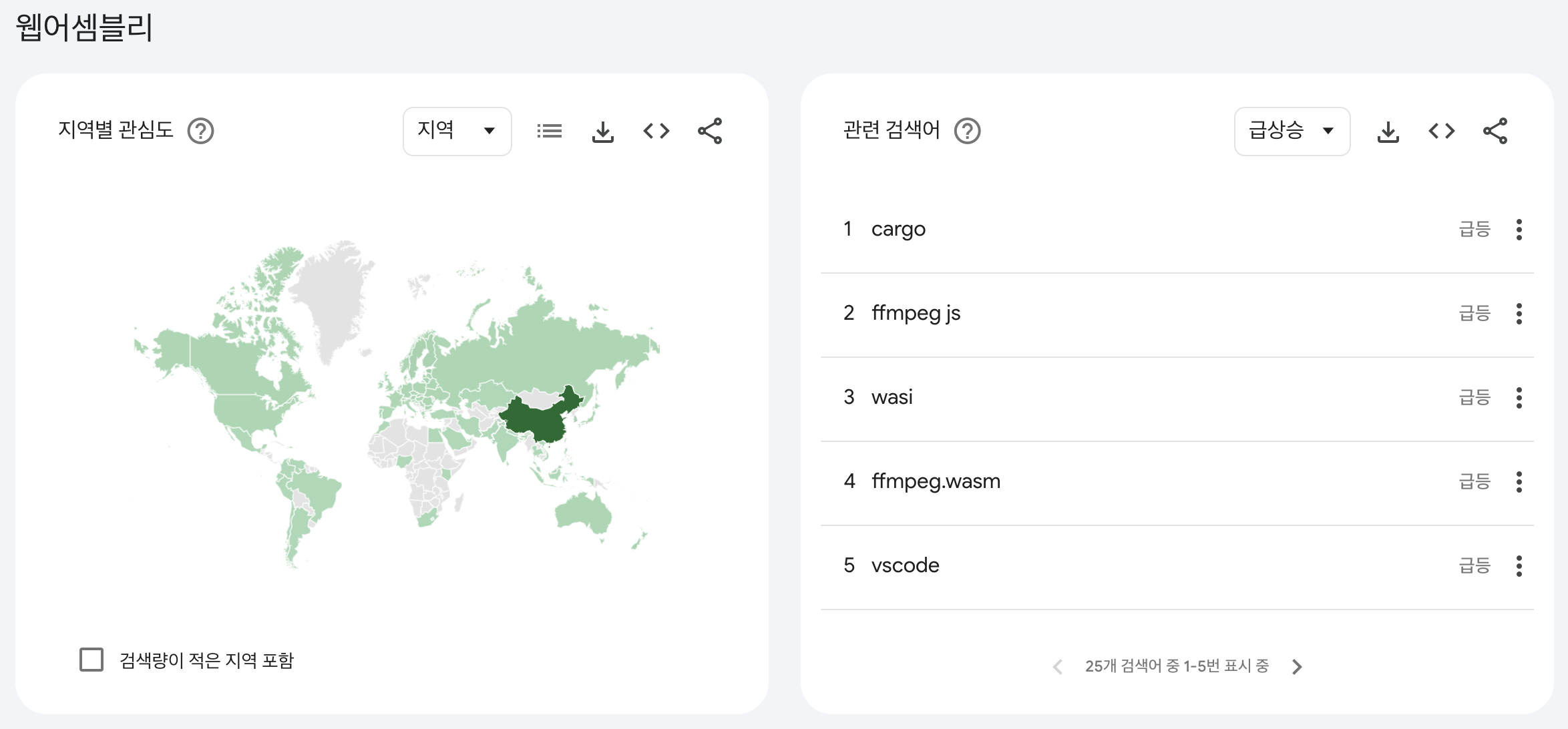 web assembly 필요성이 늘어서 검색이 조금씩 늘고있네요.