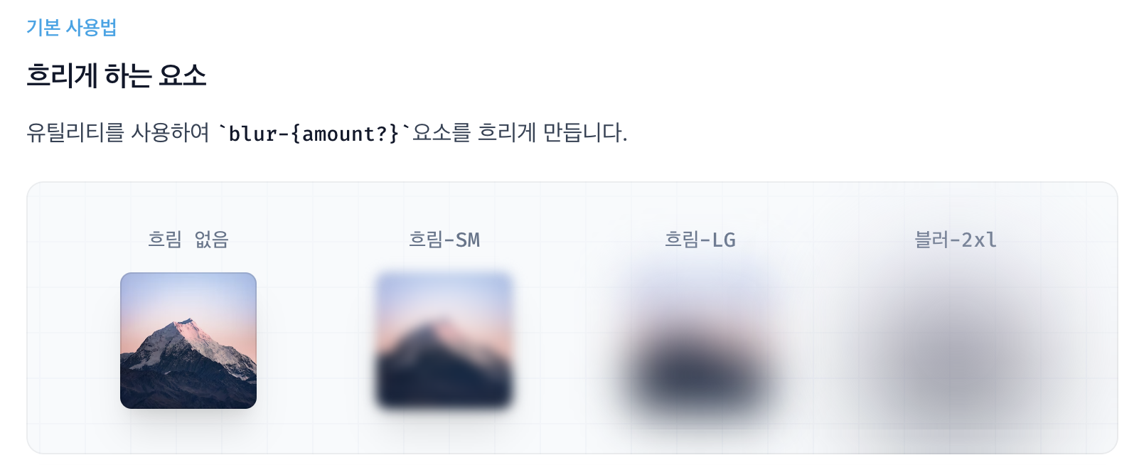 tailwindcss를 이용할댄 blur-{size} 형태로 적어주고.