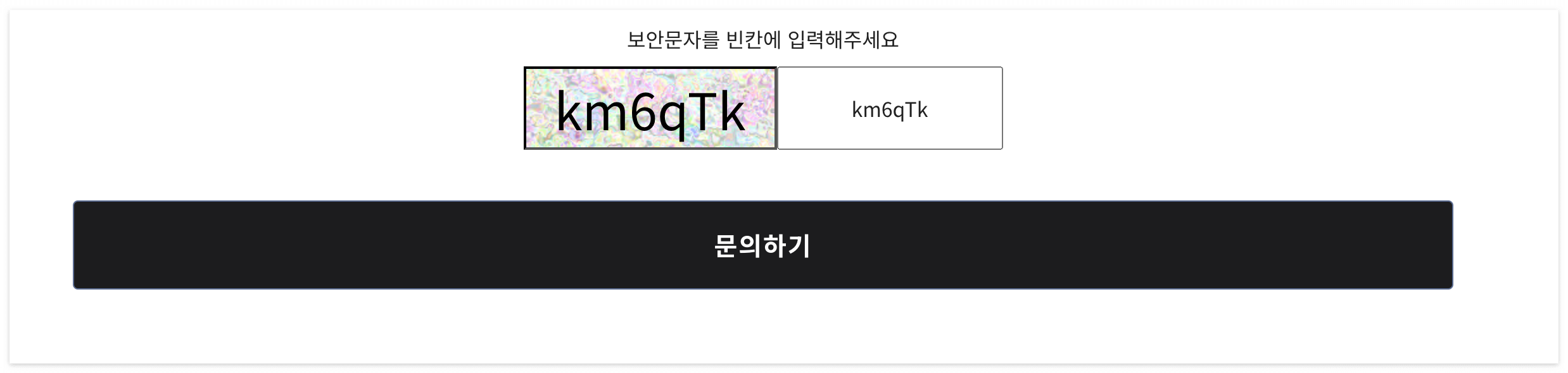 보안문자를 잘 입력해야만, 밑에 있는 문의하기가 정상적으로 동작되고,