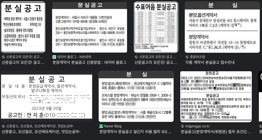 신문에 올라가는 공고는 구글링 해보니 이런 모습이네요.
