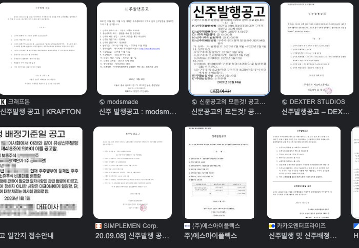 *유상증자의 경우는 신주발행 공고가 원칙이지만, 주주 전원의 동의로 생략할 수 있다고 합니다.
