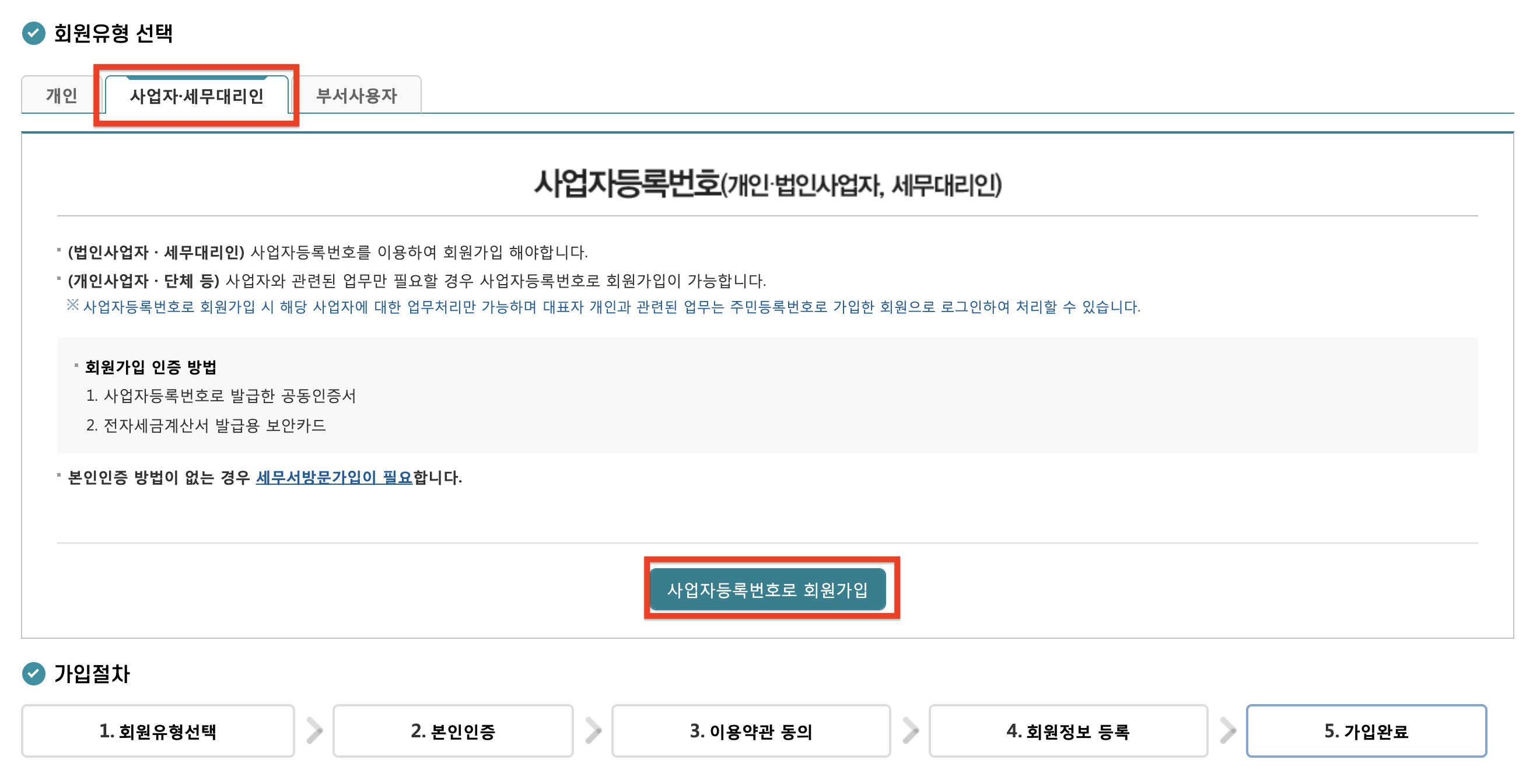 사업자 선택후, '사업자등록번호로 회원가입' 누릅니다.