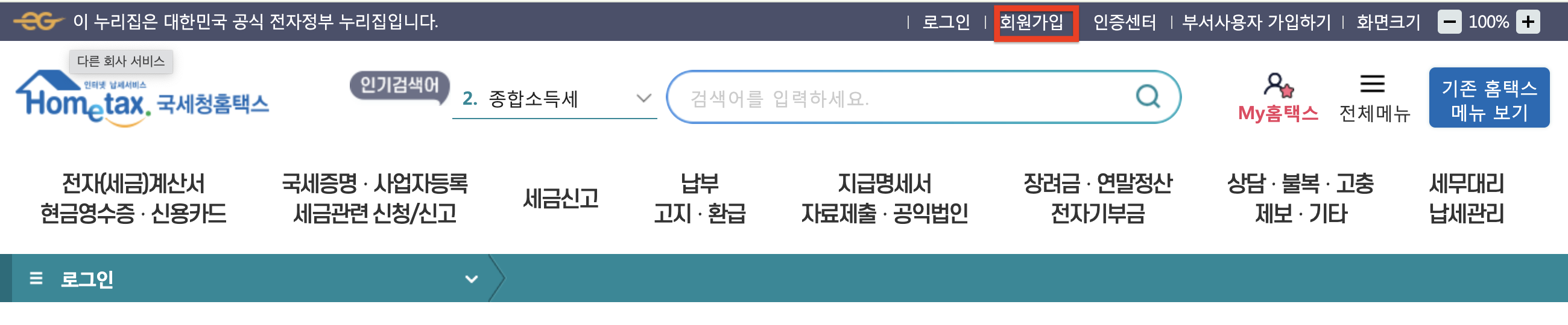 홈택스로 이동!